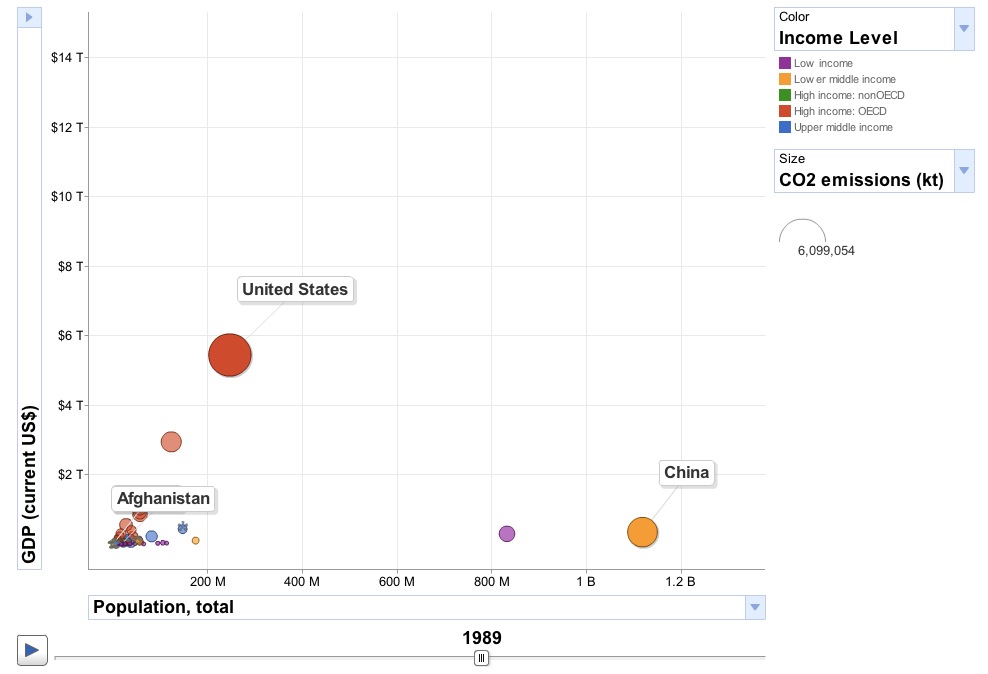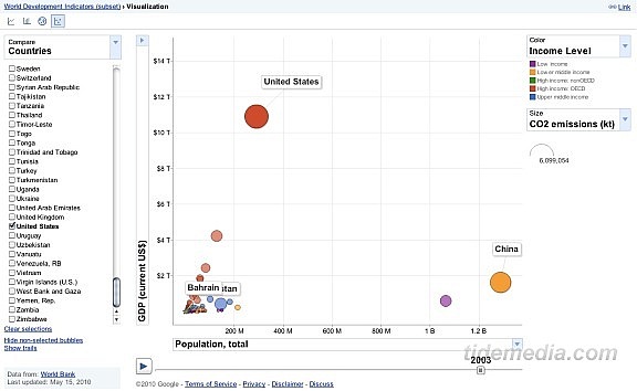 Google实验室的Public Data Explorer(公共数据浏览器)是以官方数据为基础,为一些常见的搜索请求制作图表,以更加直观的视觉形式反映搜索结果。强大的多维度图表系统提供了多维度的数据载体,XY轴、颜色、体积都可以附加关键的信息,这样便可以同时观察好几组数据,去发现他们之间的关系,了解趋势性信息。公共数据浏览器由Google与世界银行等数据统计机构合作推出。以下的浏览的截图。