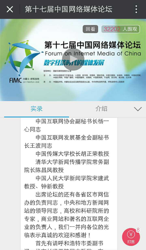 从新华网2001年承办的第一届中国网络媒体论坛至今,中国网络媒体走过了蓬勃发展的16年,中国网络媒体论坛早已成为网络媒体界层次最高、权威性最强、最具影响力的年度盛会。聚现团队为论坛直播提供了全程的技术服务与平台支持。