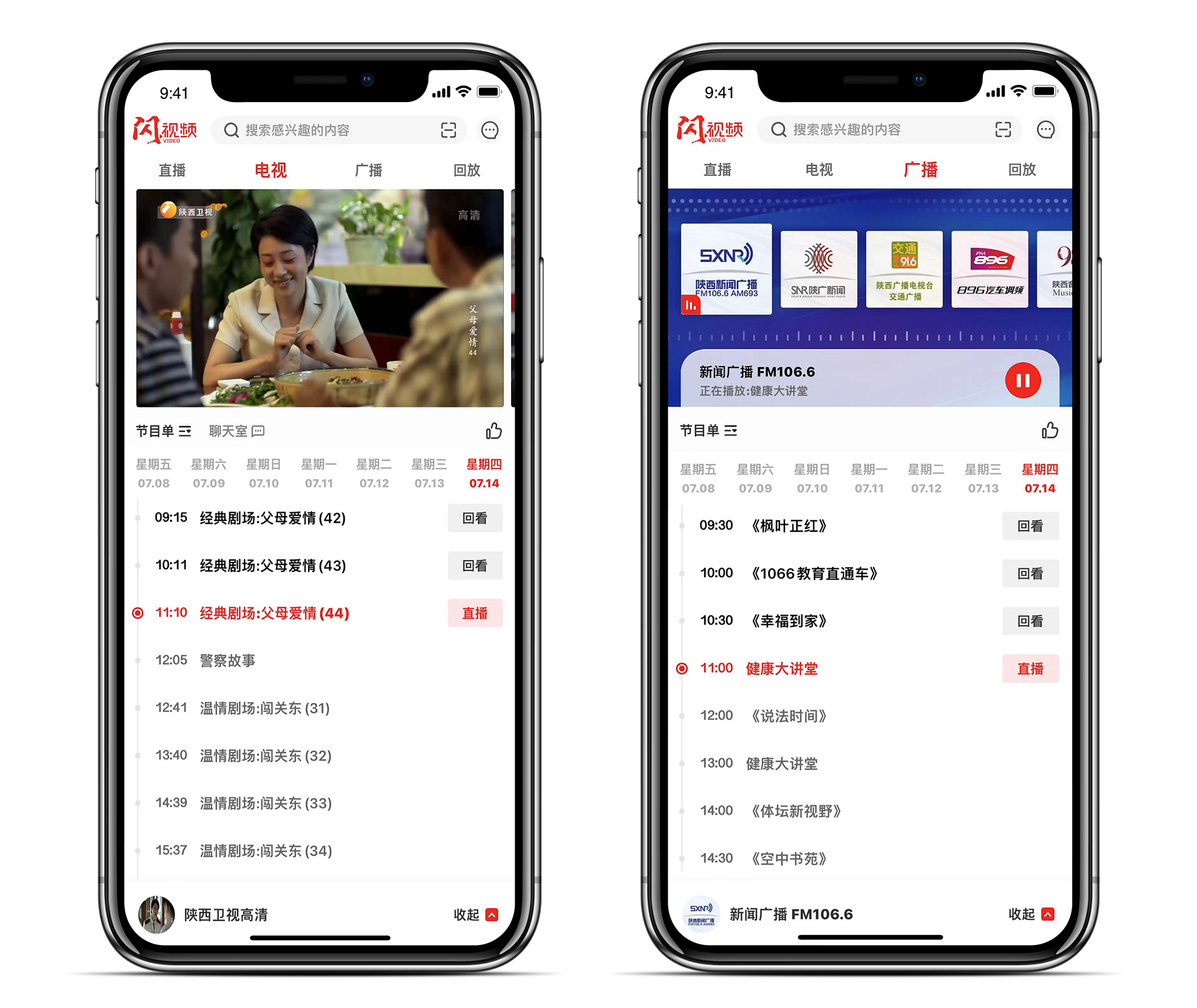 [电视直播封面图支持实时动态截取,节目单支持回看、一键收起,点赞支持单点、长按特效,滑动屏幕可选择节目进行换台,广播支持在其他频道背景音播放,悬浮按钮支持播放、暂停、进入广播页面的快捷操作。]